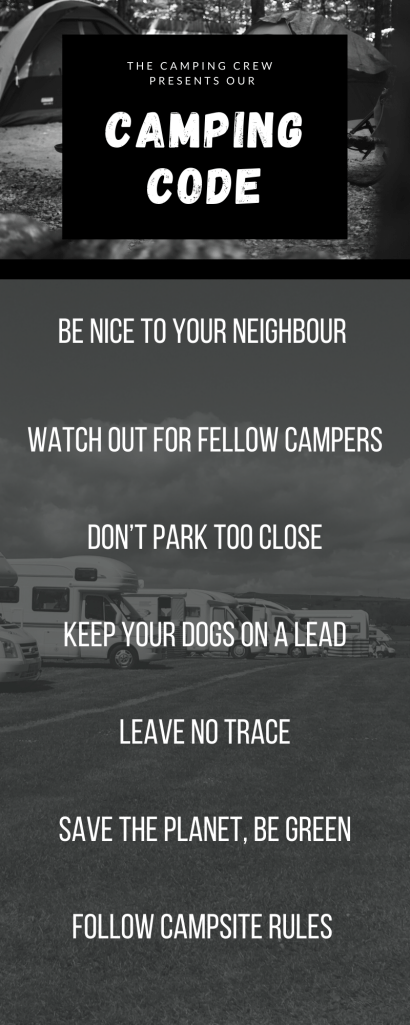 Camping Code The Camping Crew presents… Share this: Click to share on X (Opens in new window) X Click to share on Facebook (Opens in new window) Facebook Click to share on WhatsApp (Opens in new window) WhatsApp Click to email a link to a friend (Opens in new window) Email Like Loading...